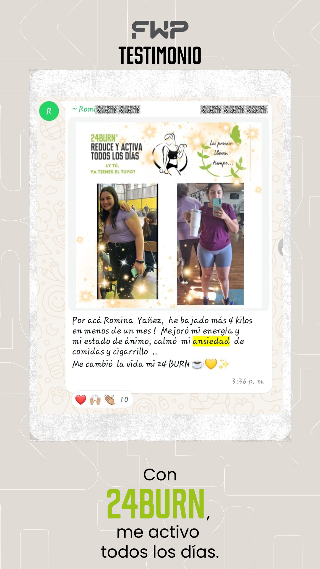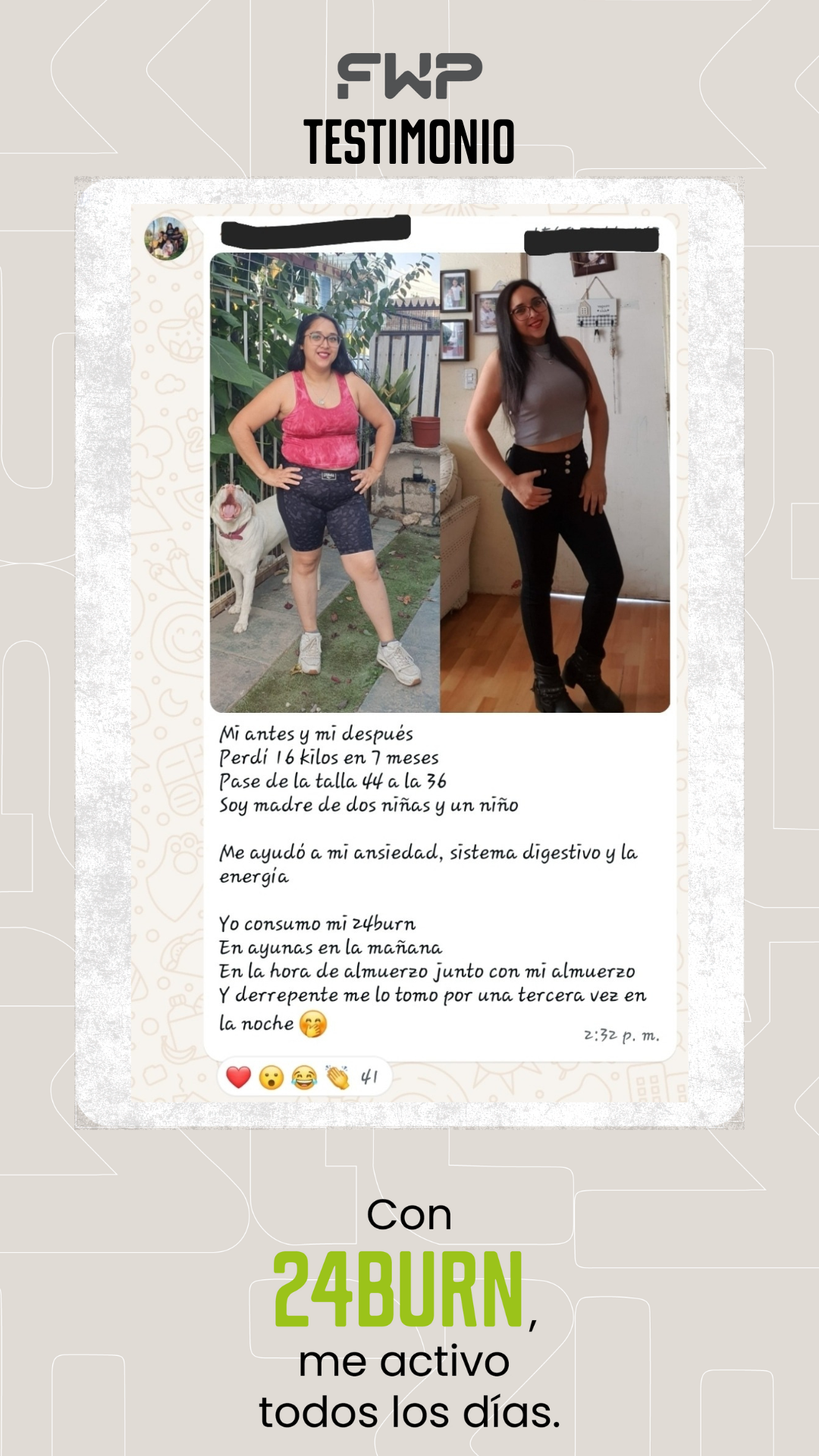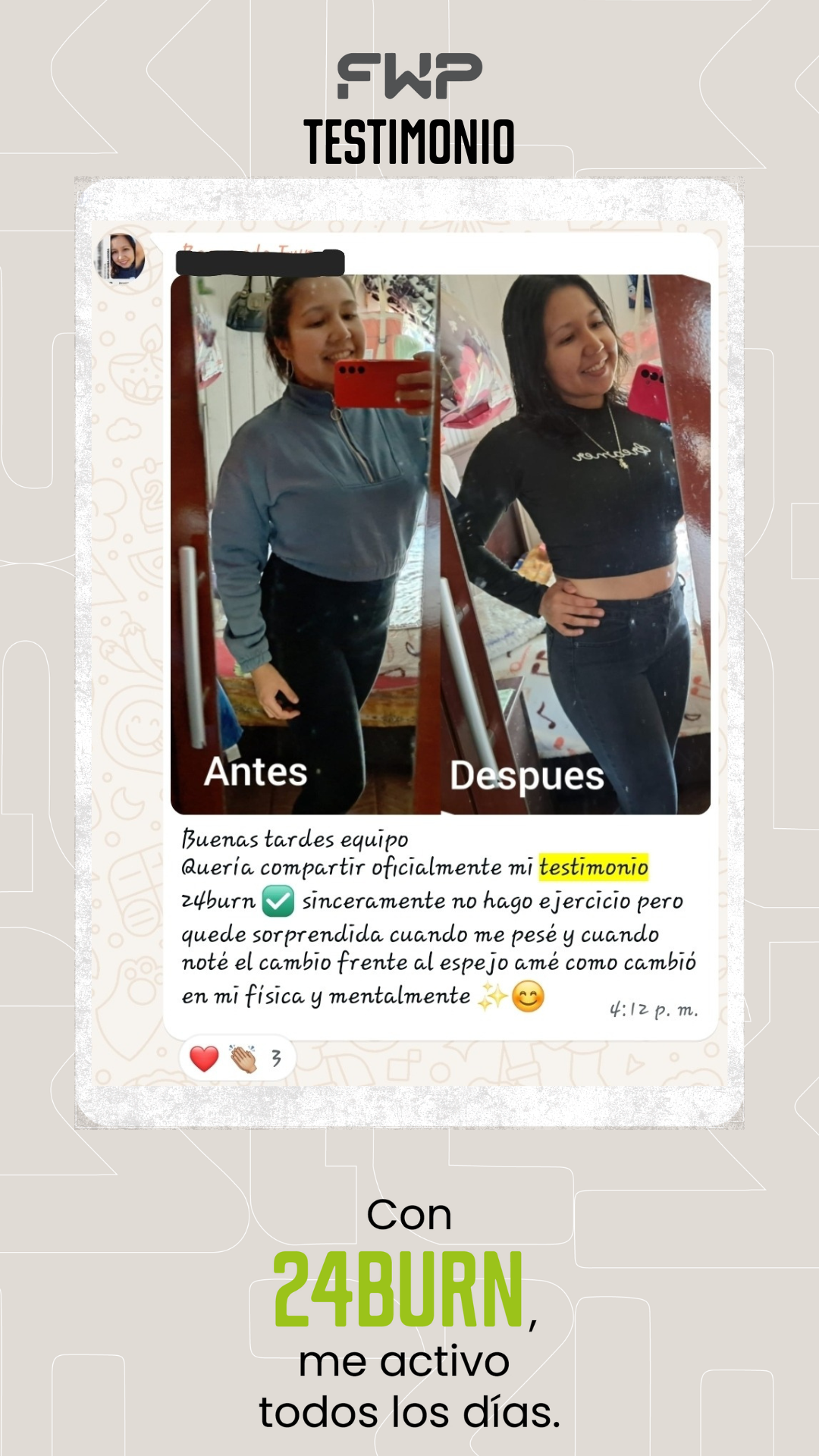 Personas con estilos de vida ocupados, que buscan optimizar su salud y perder peso de forma efectiva, han elogiado 24BURN® como su aliado perfecto para alcanzar sus metas, sin esfuerzo y de manera sostenible.
