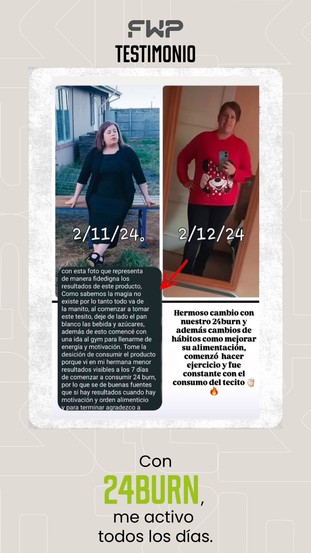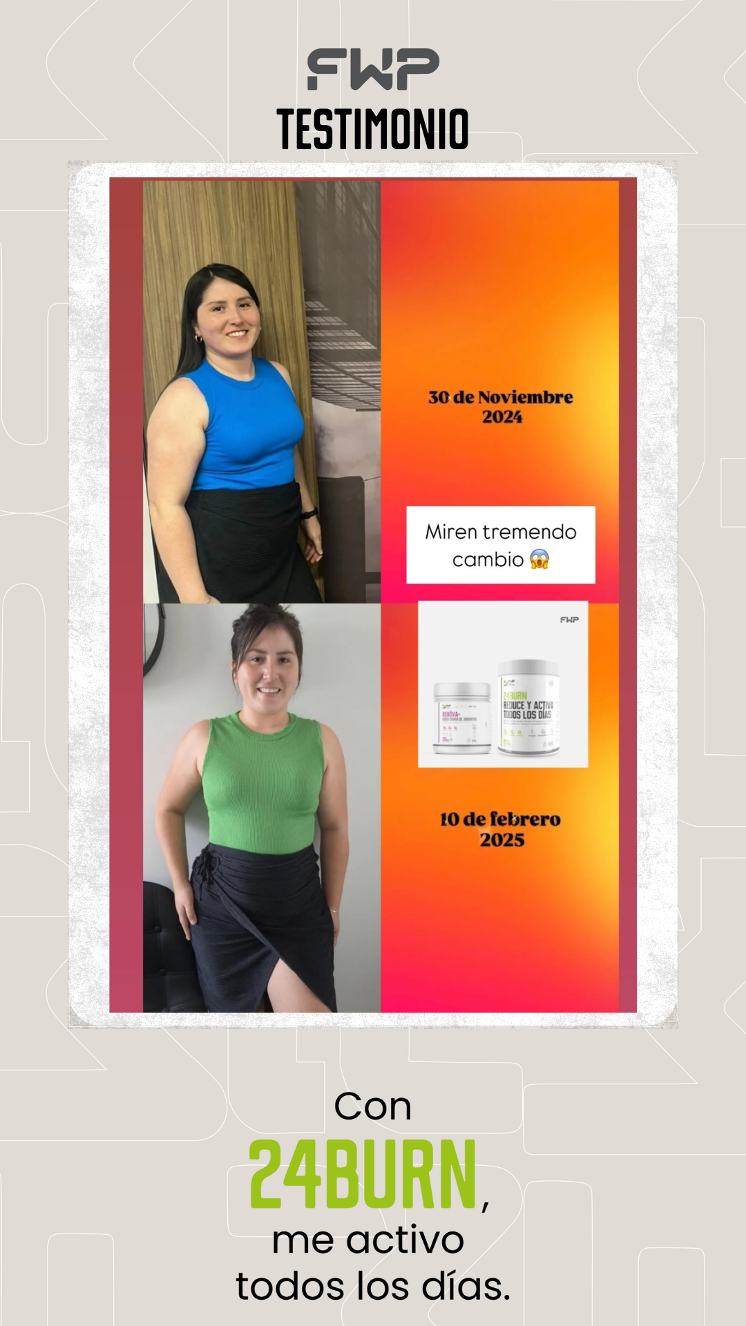 Nuestros clientes han compartido experiencias sorprendentes sobre cómo 24BURN® ha cambiado su bienestar. Muchos han experimentado una mejora significativa en su digestión y metabolismo, logrando una limpieza interna que revitaliza su cuerpo. Ahora, pueden disfrutar de días más ligeros y activos, sintiéndose más saciados y con un metabolismo que trabaja a su favor.